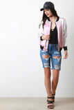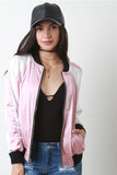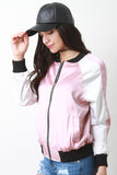 This trendy jacket features a reversible two tone design with pink and white and black and white on the reverse, silky fabrication, contrast rib knit trim, metal zipper closure, and welt front pockets. Accessories sold separately. 100% Polyester.