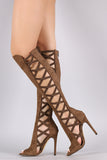 Suede Crisscross Elastic Peep Toe Stiletto Boots