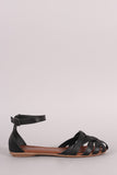 This fun sandal features a strappy woven design, lightly padded insole, and adjustable ankle strap with buckle fastening.