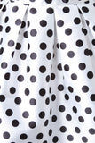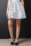 This skirt features contrasting polka dot print, wide waist seam, box pleating, skater flare cut, and lined underlay. Accessories sold separately. 100% Polyester.