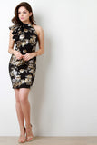 Asymmetrical Metallic Floral Bodycon Dress
