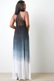 This beautiful maxi dress features a loose crochet knit racer back, v-neckline, and ombre dyed design. Accessories sold separately. 100% Rayon.
