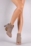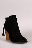 • Qupid Open Toe Chunky Heel Tassel Booties