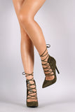 Suede Pointy Toe Lace-Up Stiletto Pump