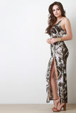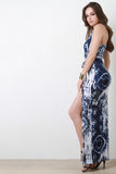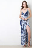 Tie Dye Surplice Thigh High Slit Maxi Dress