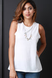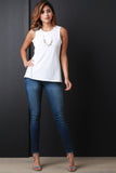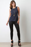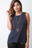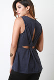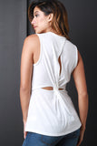 This tank top is trapeze silhouette with a sleeveless design. Lightweight fabric. Scoop neckline. Dropped armholes. Back has a surplice knotted design, creating keyhole openings. Accessories sold separately. 60% Rayon. 40% Polyester.