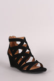 These chic wedge sandal feature a caged cutout design vamp with top stitching accents, open toe silhouette, and covered wedge heel. Finished with lightly padded insole and rear zipper closure for easy on/off.