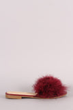 This sandal features a wide band across vamp with soft faux fur accent, open toe silhouette, and lightly cushioned insole for comfort.