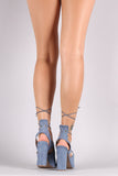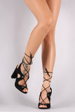 Wild Diva Lounge Suede Wavy Cutouts Lace Up Heel