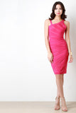 Asymmetrical Shoulder Contrast Mesh Bodycon Dress