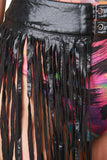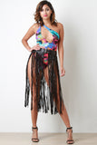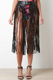 Double Buckled Vegan Leather Fringe Midi Skirt