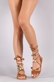 Bamboo Pom Pom Lace Up Flat Sandal