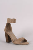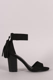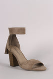 Breckelle Suede Tassel Ankle Cuff Open Toe Chunky Heel
