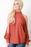 Mock Neck Open Sleeve Top