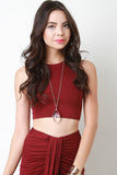 This crop top features soft jersey knit, round neckline, and sleeveless construction. Accessories sold separately. Made in USA. 95% Rayon, 5% Spandex.