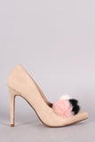 Multi Colored Pom Pom Suede Pointed Toe Heels