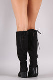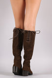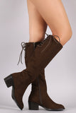 Bamboo Suede Back Lace Up Block Heeled Knee High Boots
